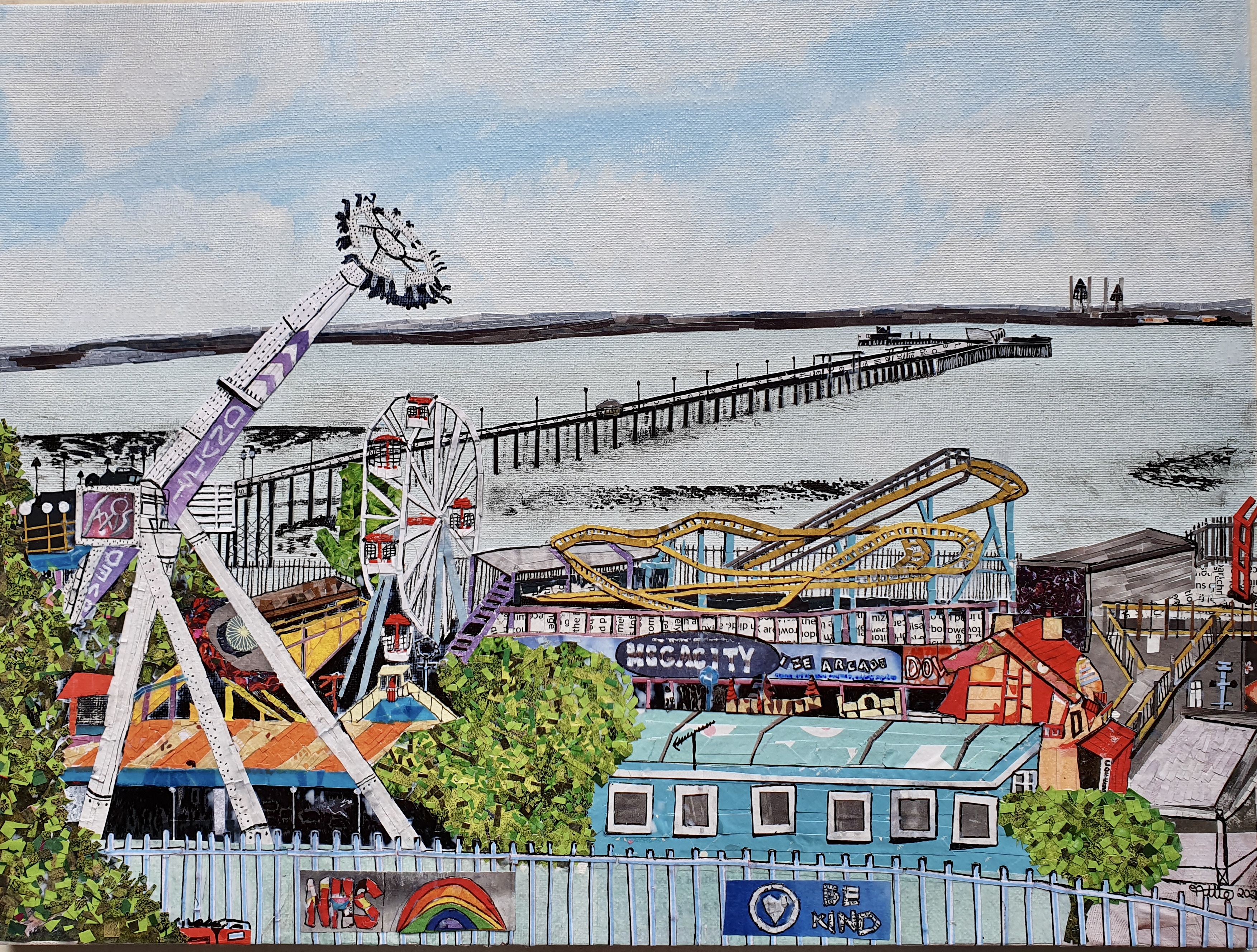 I call the piece the Juxtaposition and that’s what it always feels like to me. This cacophony of colour, sound and smells in front of this peaceful stretch of water with the iconic Pier that has been there so long jutting out into the sea. I have always loved the Pier since I was little and I would go on there and watch all the fisherman, or go bowling as I got older. As for Adventure Island, for me it will always be Peter Pans Playground in my head as that’s what it was when I was growing up! The boating lake on one side with the waxworks and the Golden Hind and the much smaller amusements on the other side, wow how it’s changed and grown since I was a girl!