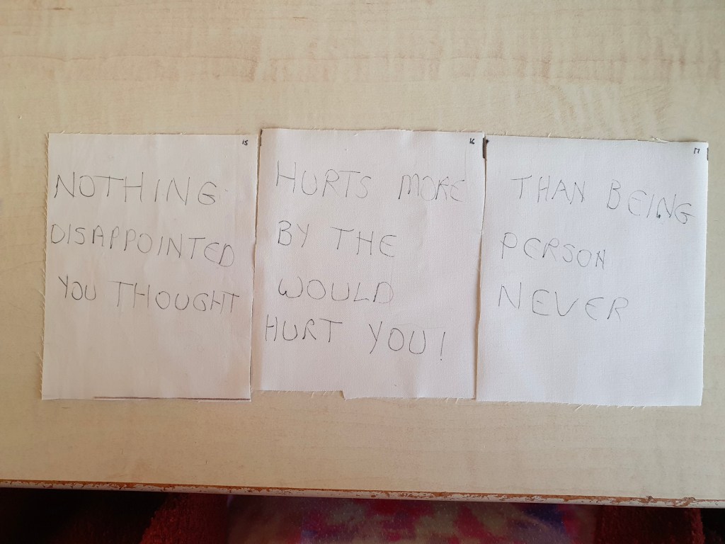 I wasn’t really prepared for the reaction it prompted in other people, I realised by looking at my piece they were more able to talk about their own feelings and also people who didn’t experience any hidden illness were able to ask questions and see things differently.