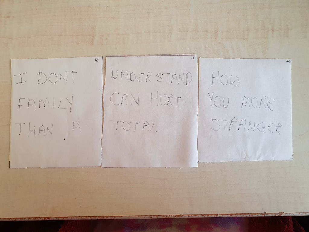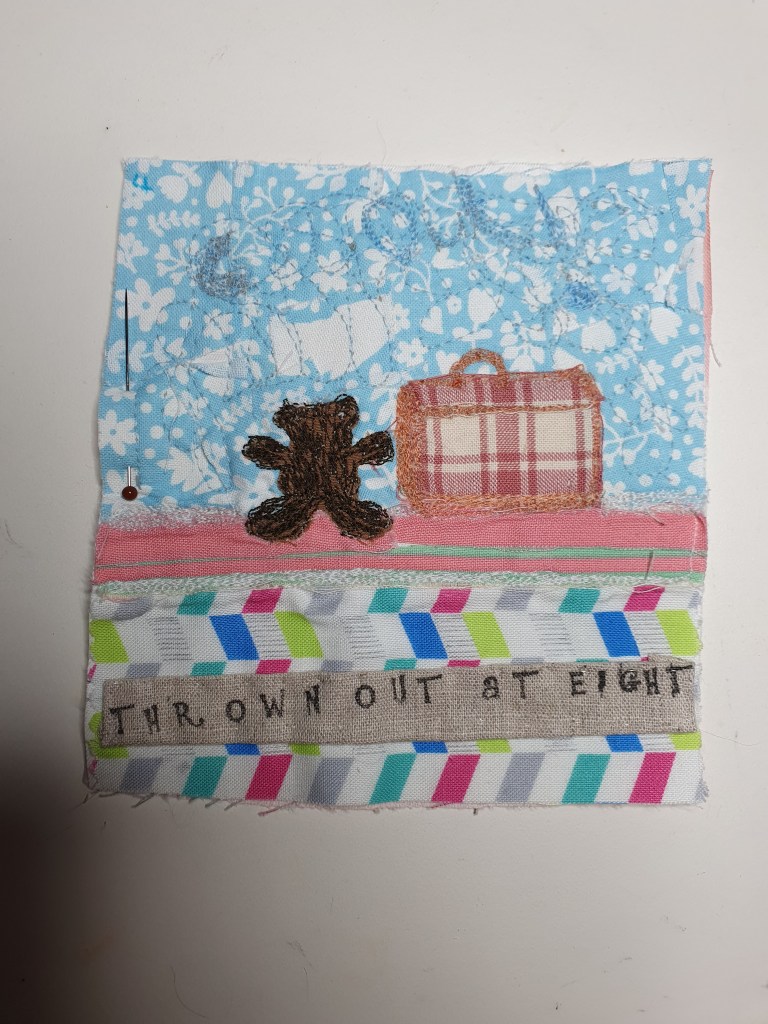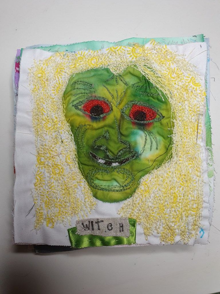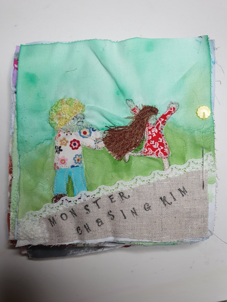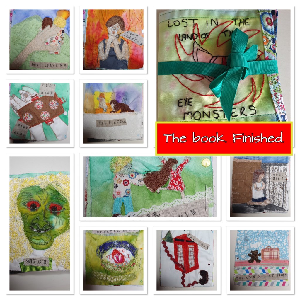I have been working on a textile book to help me process a particular part of my childhood. I was severely abused as a child and this book processes what it was like as a four to eight year old to be surrounded by adults that should have cared for her but instead hurt her. I wrote the story a few years back while I was having therapy to help me process things. Making the book was a cathartic process to look at it again as an adult. It was important to me that others who may feel shame through child abuse see this book. The shame lays with the adults, not the child.