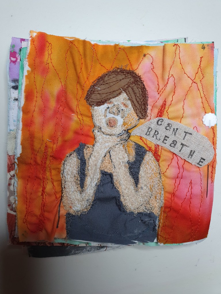 I started doing a free motion class at my local college and the idea was to have your own project to work on. I had been toying with the idea of attempting a large textile piece for a while and I thought while I had a tutor there for support; this might be the ideal time. I decided I wanted to visualise hidden illness somehow, I had been going through a rough patch with various things and no one really knew because it’s not noticeable as such, in fact several people had said to me, ‘you are looking well’. As nice a comment as that should be, when you are really struggling just to get through the day it’s very difficult to hear. I thought how can I use my art to show what I can’t talk about, to let people see what’s really happening.