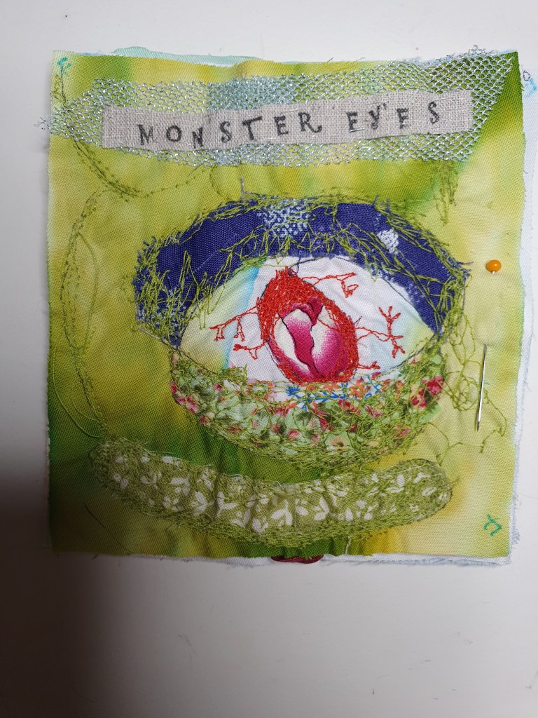 My tutor was very good with that and helped me look at it at cell level where it was actually very pretty. I used a lot of different techniques on the piece, painting the fabric, appliqué, printing, lino cutting, free motion stitching, embellishment and more, it is great to combine these techniques onto one piece.